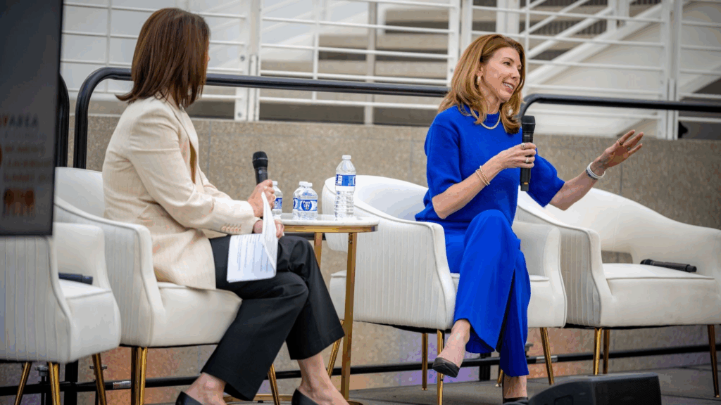 San Jose State University President Cynthia Teniente-Matson was our closing keynote speaker and talked with Annie Freyman, Vice President of Corporate Strategy for PayPal, about the university’s leadership in AI education, creating opportunities for women and her leadership style. More than 20 young women leaders from SJSU attended as our guest.